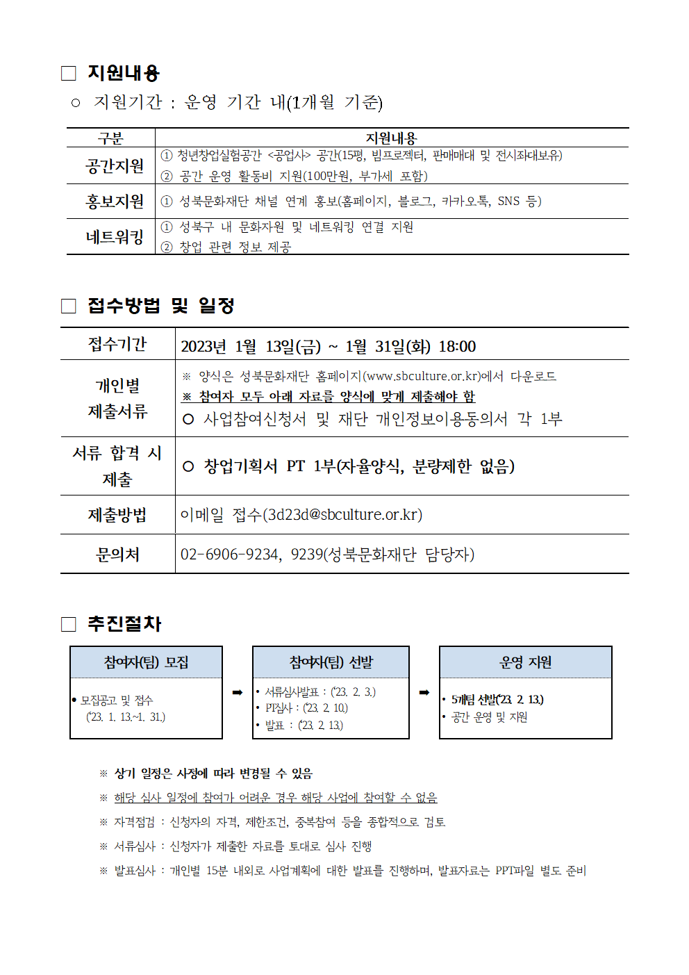 | 3d23d@sbculture.or.kr | 전화번호 | 성북문화재단 담당자 02-6906-9234, 9239 | |