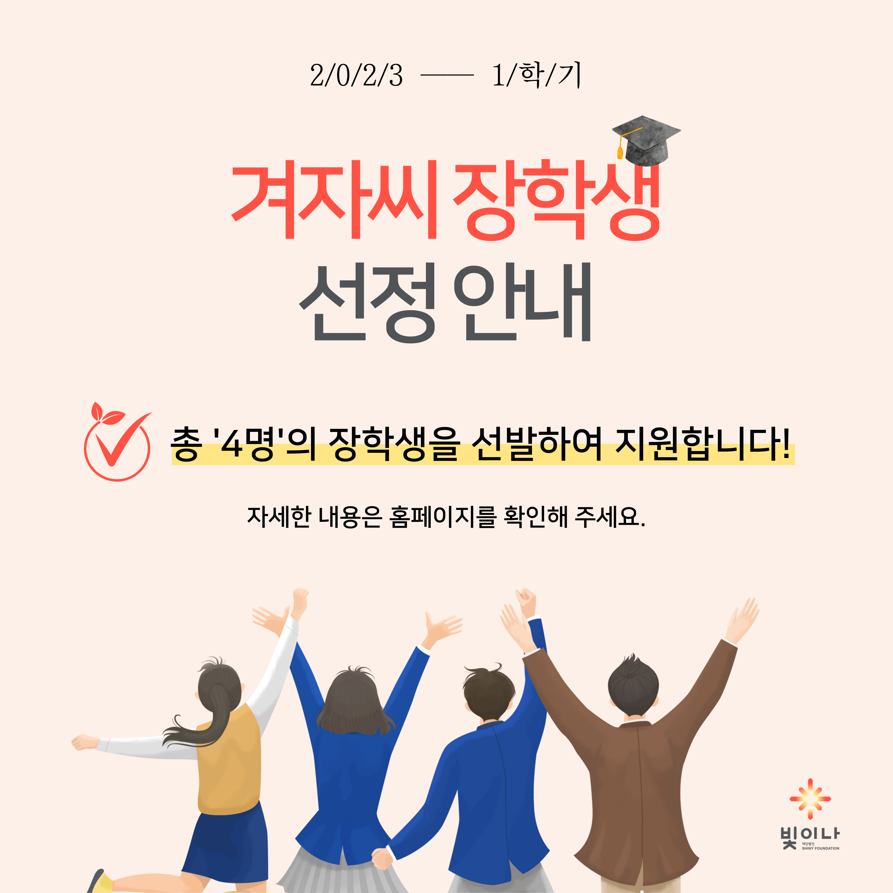 본 법인은 2023년 1학기 겨자씨 장학사업을 통해 총 '4명'의 장학생을 선발하여 지원하였습니다.