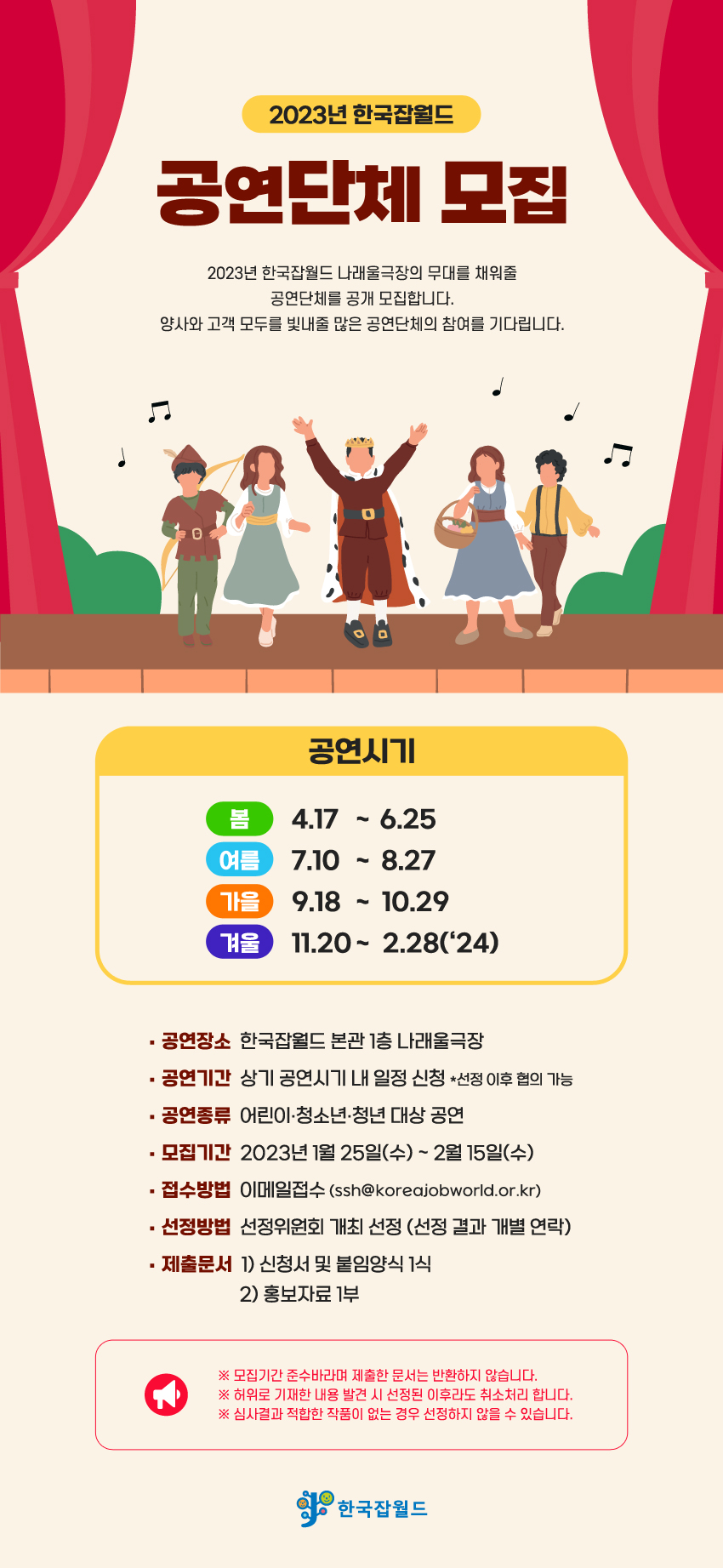| 2023년 한국잡월드 공연단체 모집 | |||