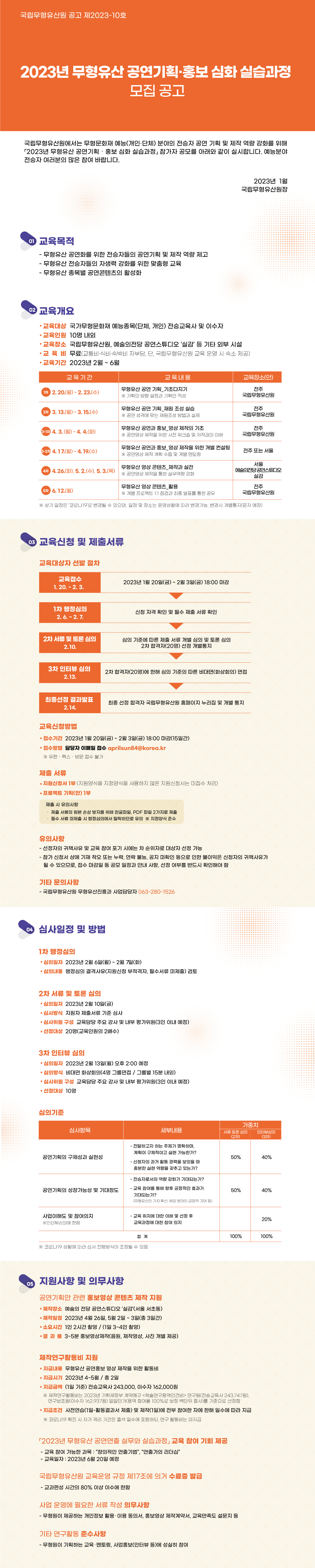 | 2023년 무형유산 공연기획・홍보 심화 실습 과정 참가자 모집 공고 | |||