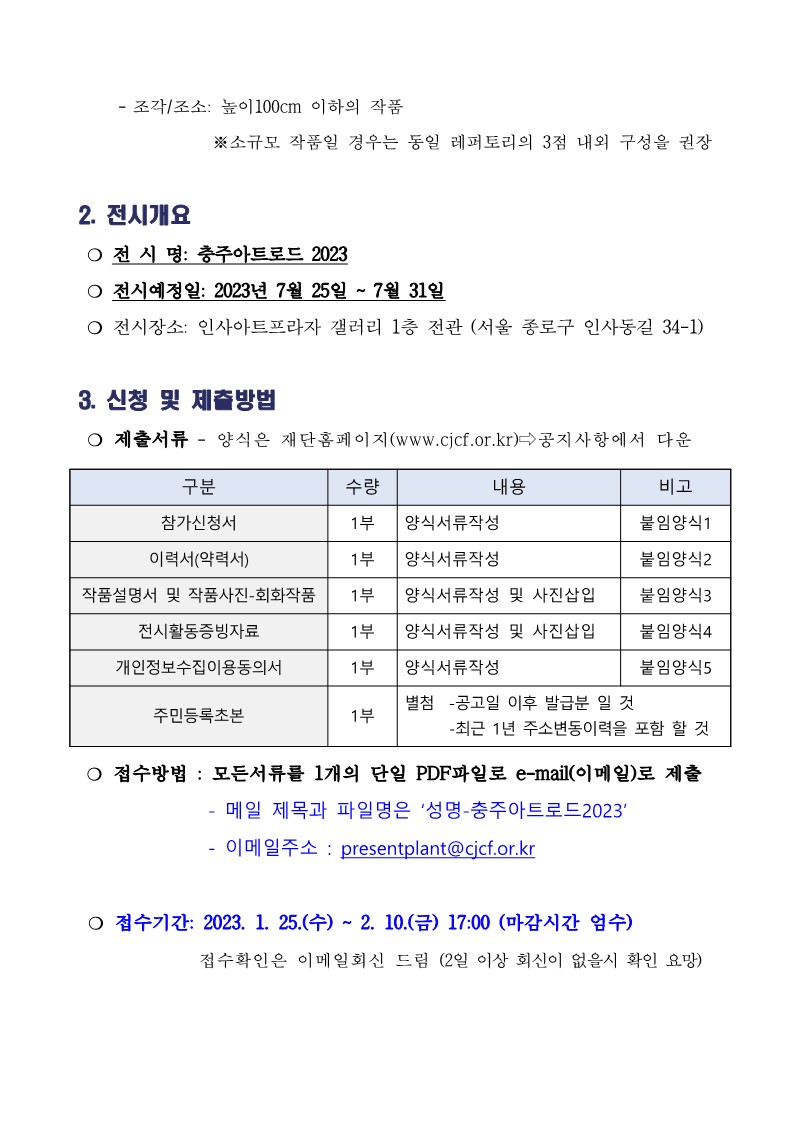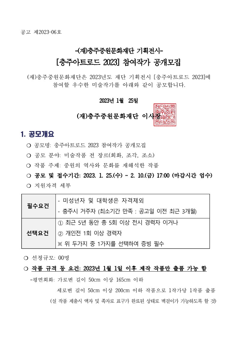 | 충주아트로드 2023 참여작가 공개모집 공고 | |||