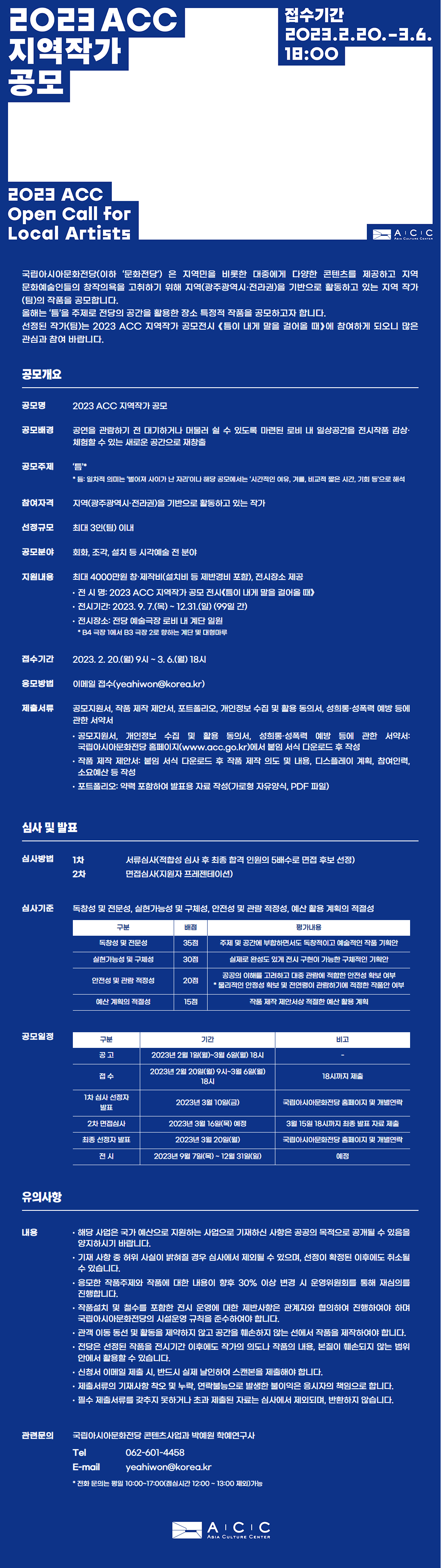 | 2023 ACC 지역작가 공모전시 참여작가 모집 | |||