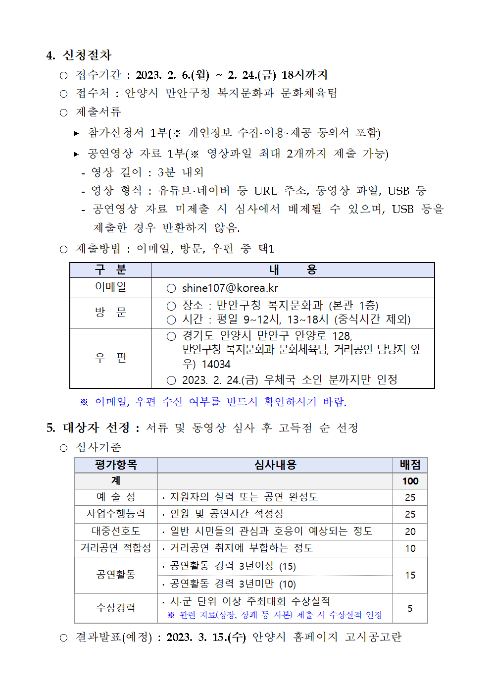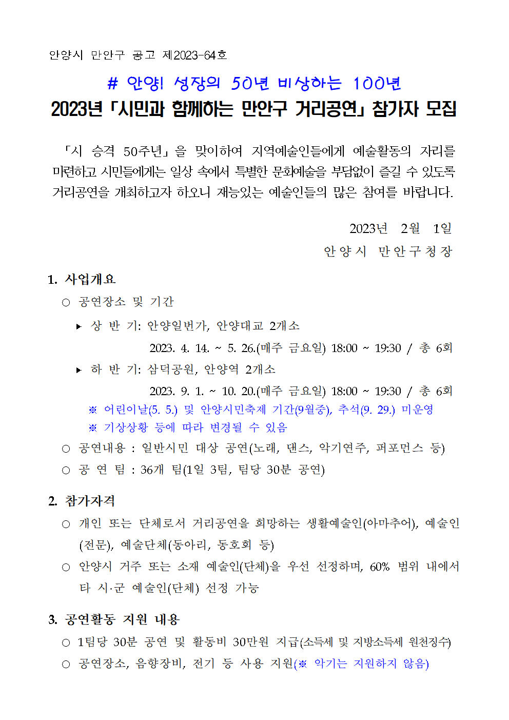 | 2023년「시민과 함께하는 만안구 거리공연」참가자 모집 | |||