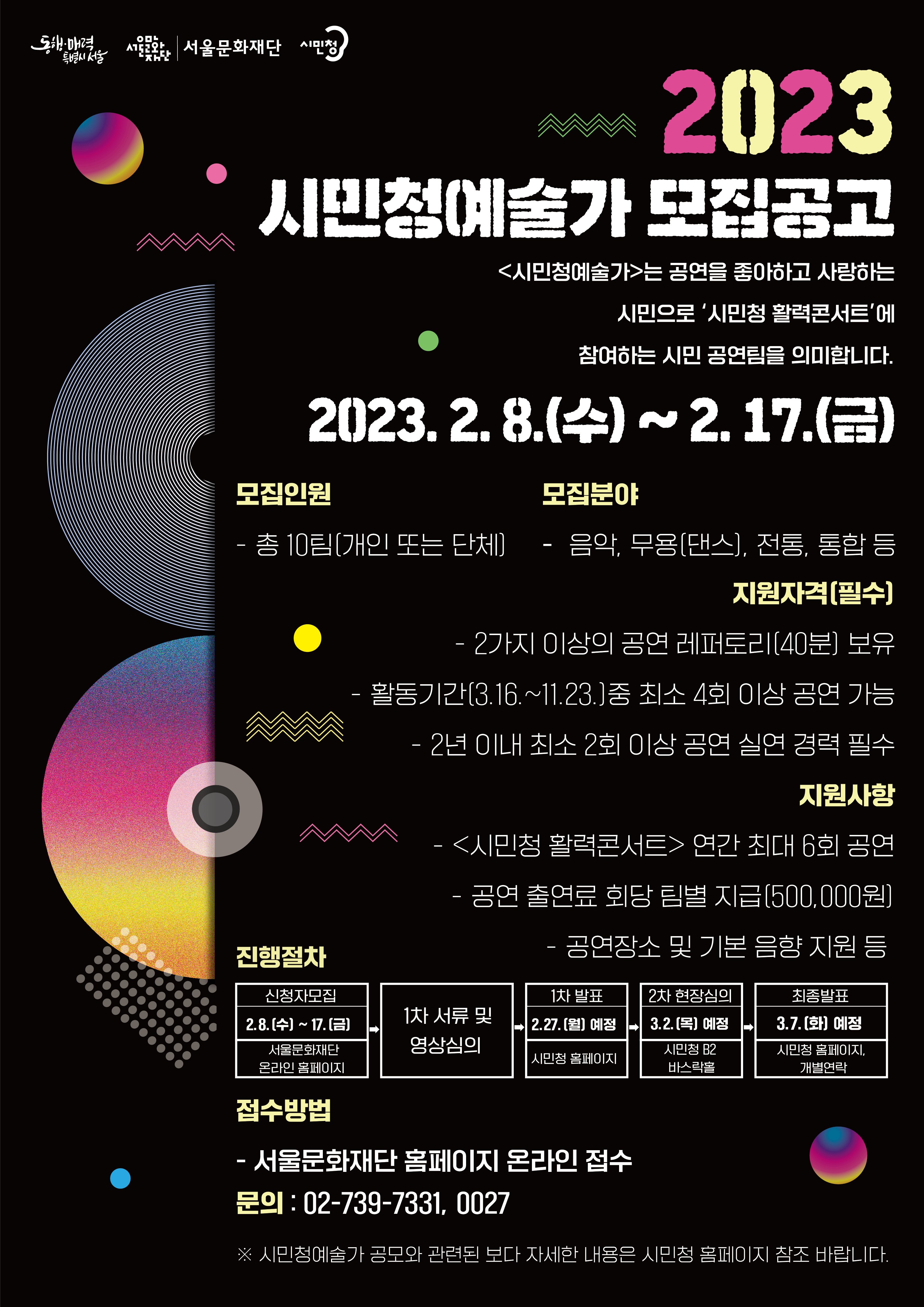 | 2023년 시민청 <시민청예술가> 모집 | ||||||||||||||||||||||||||||||||||||||||||
