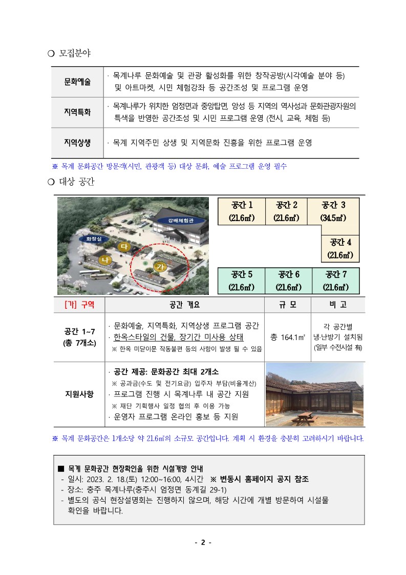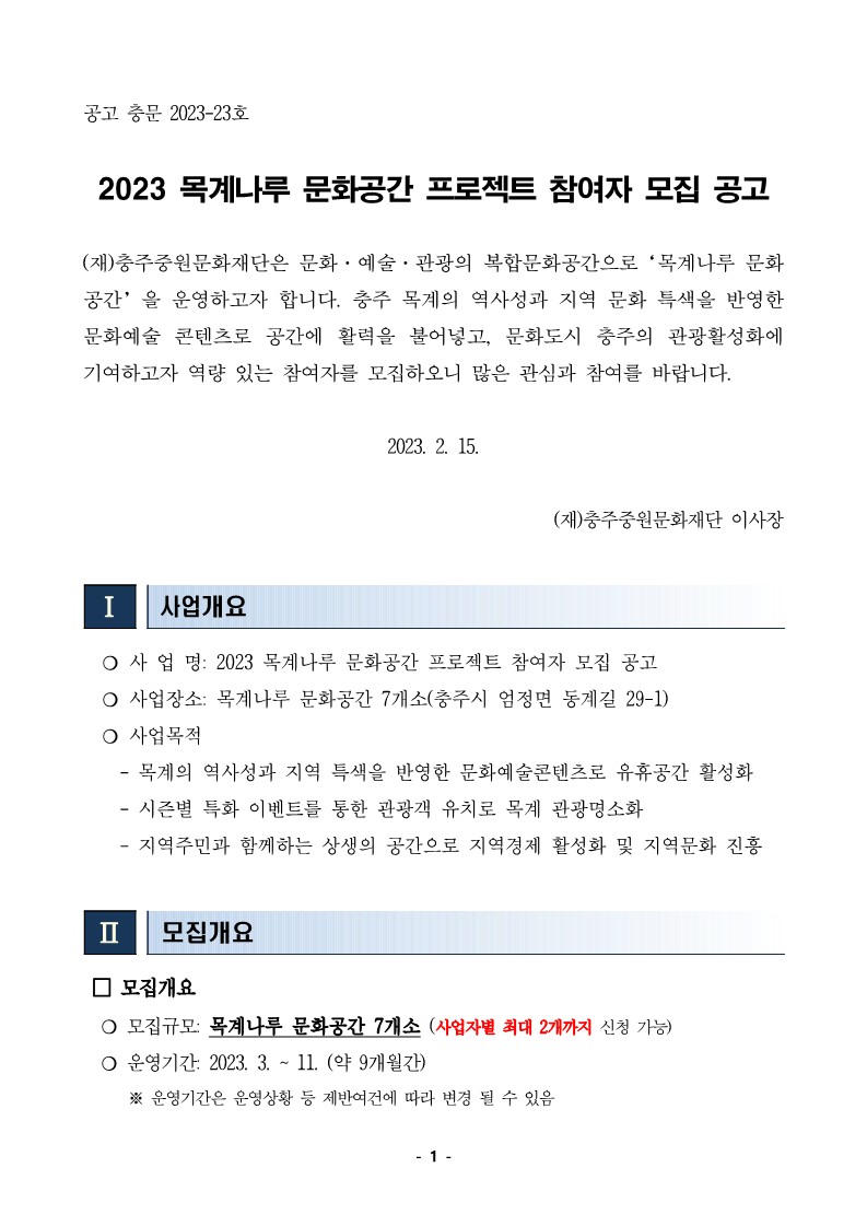 | 2023 목계나루 문화공간 프로젝트 참여자 모집 공고 | |||