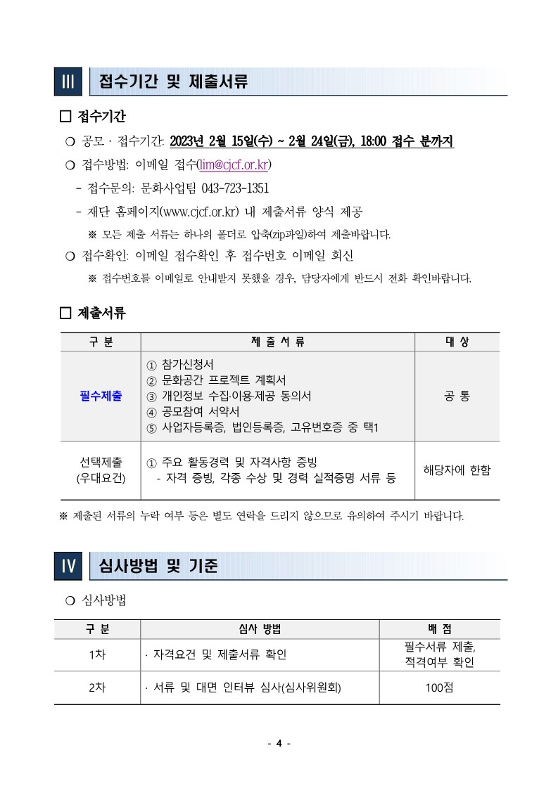 | lim@cjcf.or.kr | 전화번호 | 문화사업팀 043-723-1351 | |