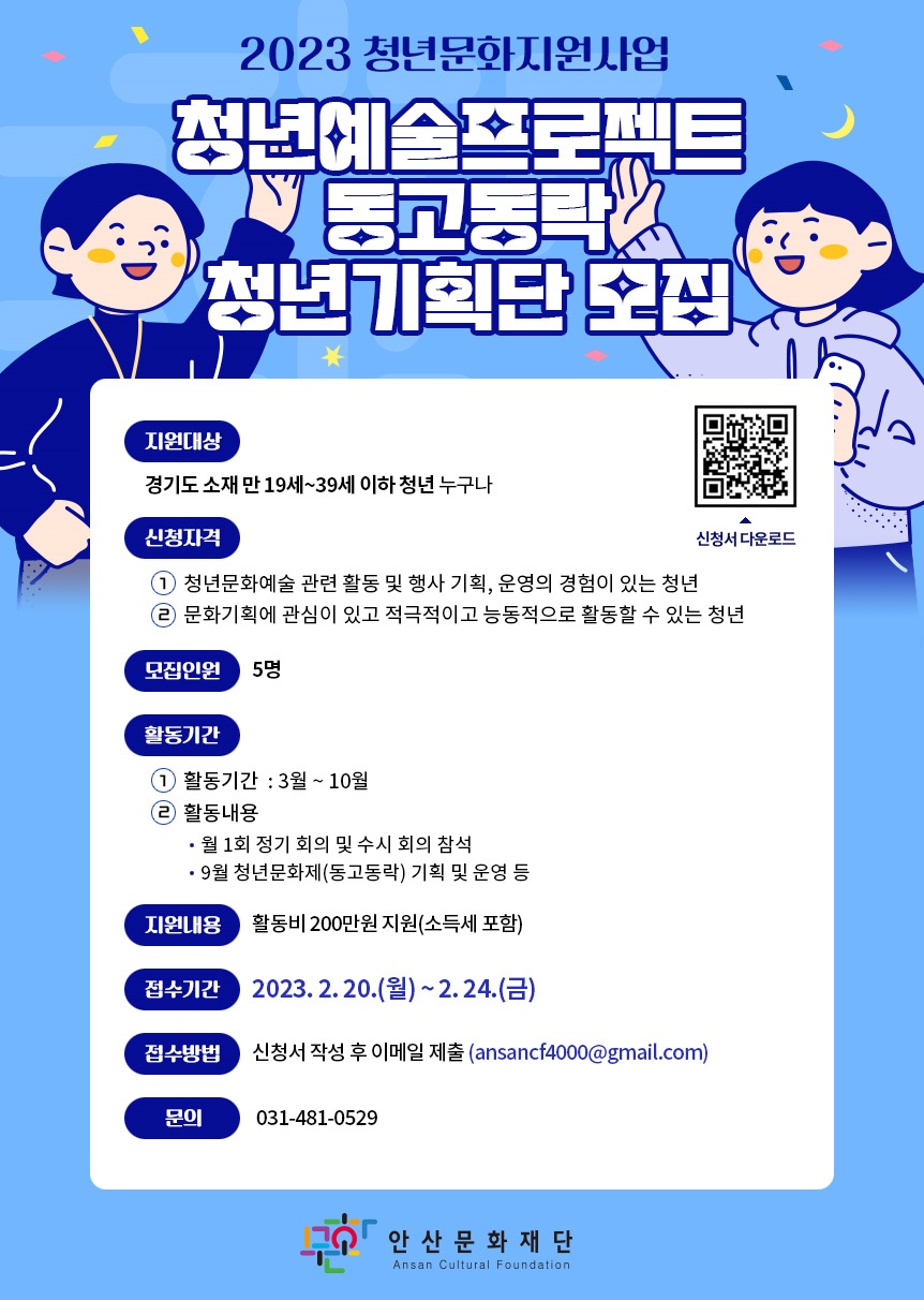 | 2023 청년문화지원사업 <청년예술프로젝트 동고동락> 청년기획단 모집 | |||