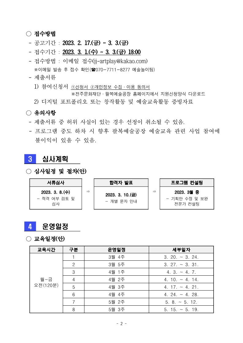 | jj-artplay@kakao.com | 전화번호 | 예술놀이팀 070-7711-8277 | |
