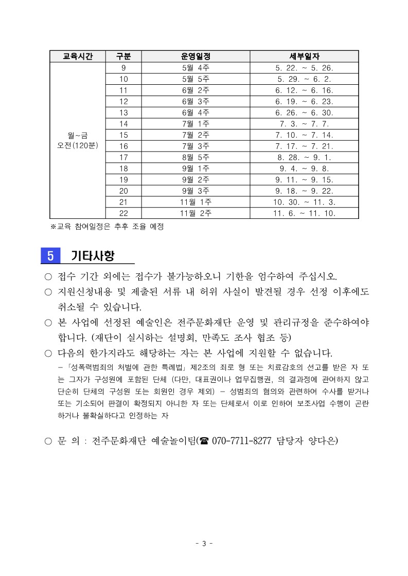 | 분야·대상 | 아동 대상 문화예술교육 프로그램 기획·운영이 가능한 예술인 | 인원 | - |