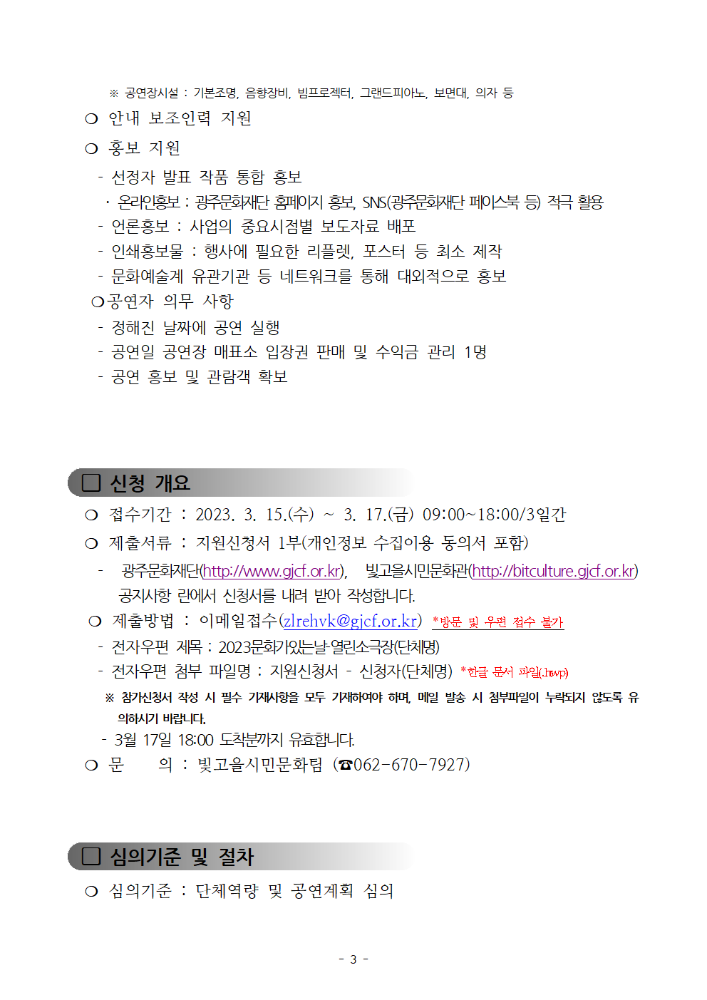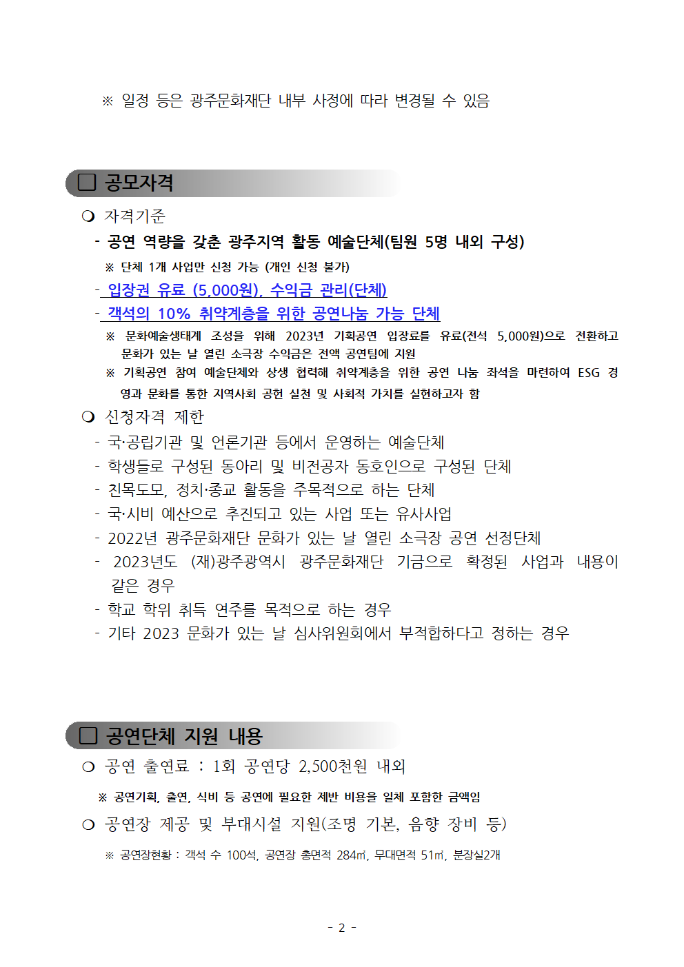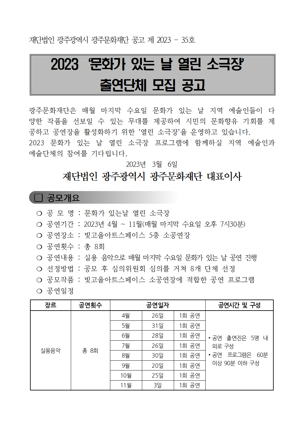 | 2023년도 「문화가 있는날 열린 소극장 출연단체 모집」 공고 | |||