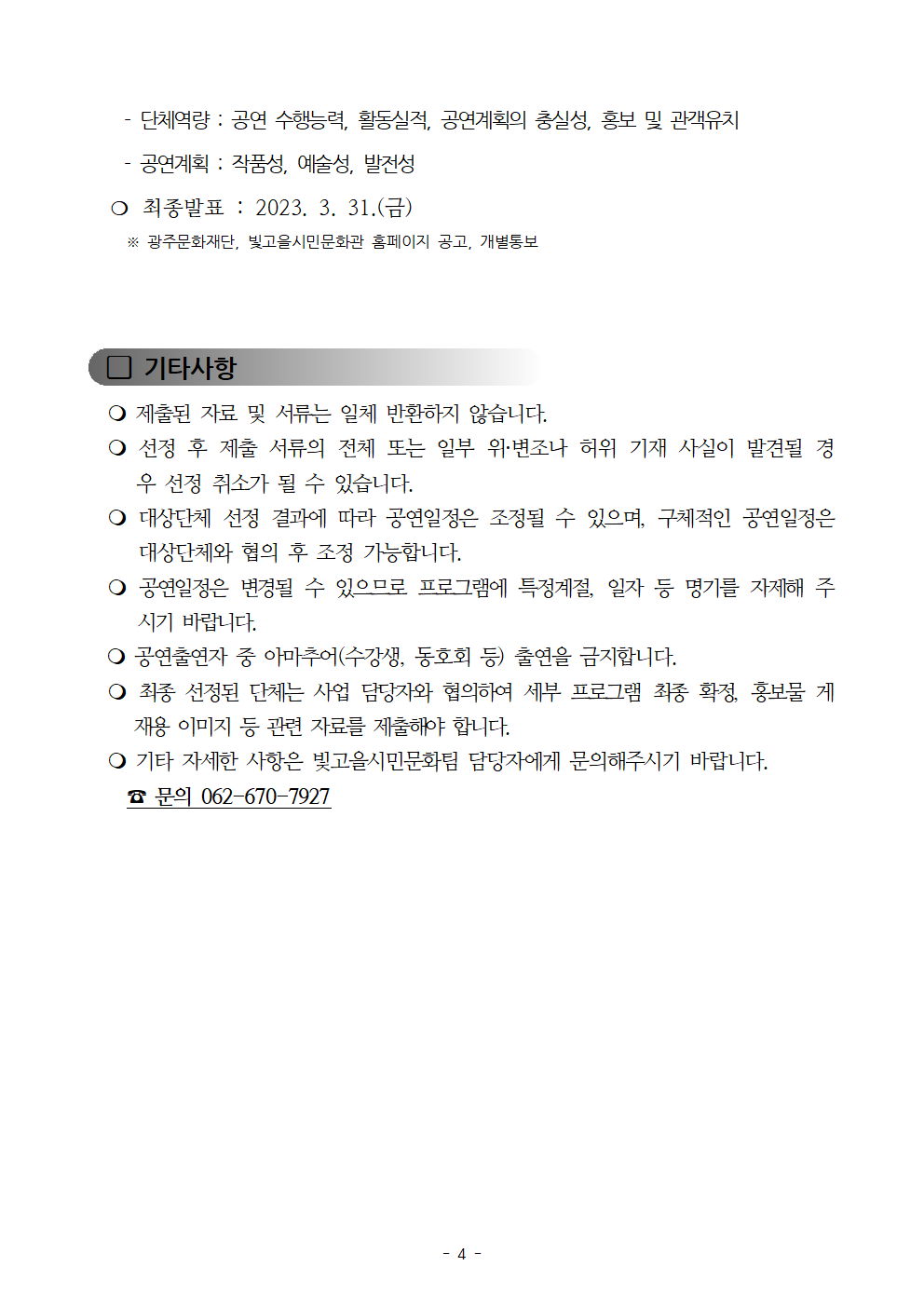 | 분야·대상 | 공연 역량을 갖춘 광주지역 활동 예술단체(팀원 5명 내외 구성) | 인원 | - |