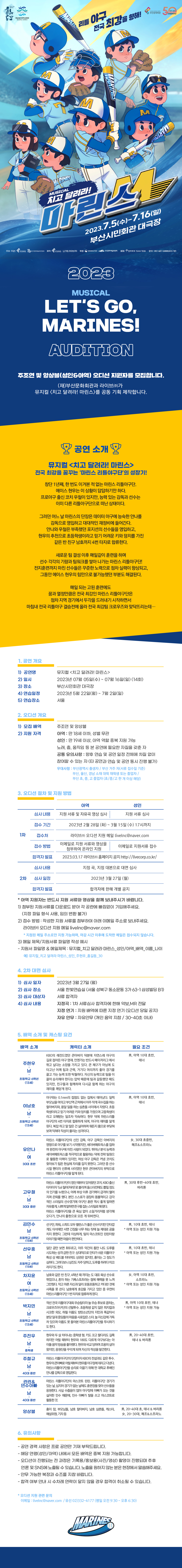 | [(재)부산문화회관 기획제작] 2023 뮤지컬<치고 달려라! 마린스> 오디션 공고 | |||