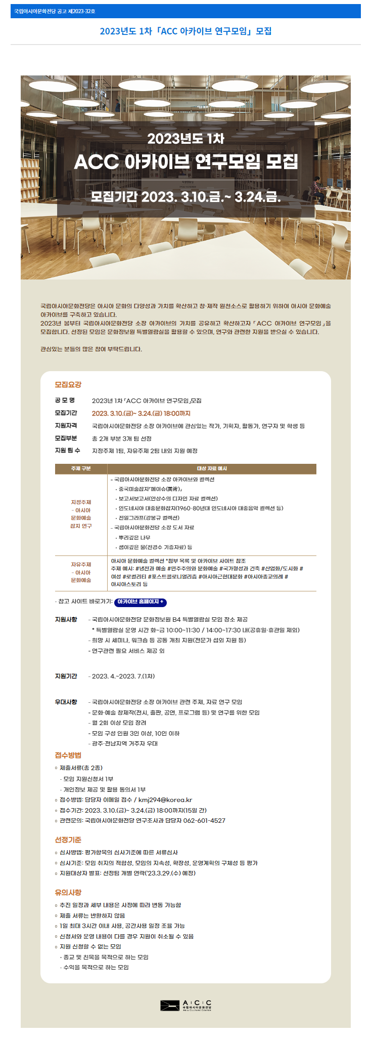 | 2023년도 1차「ACC 아카이브 연구모임」모집 | |||