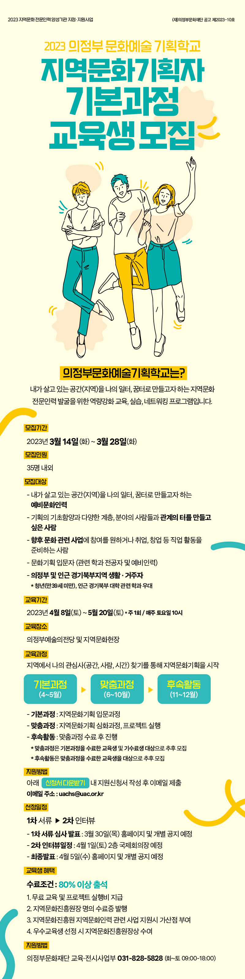 | 2023 지역문화전문인력 양성사업 「의정부문화예술기획학교」 기본과정 교육생 모집 | |||