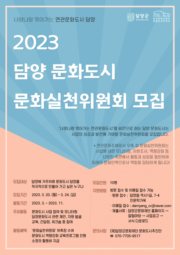 | 2023 담양 문화도시 "문화실천위원회" 모집공고 | |||