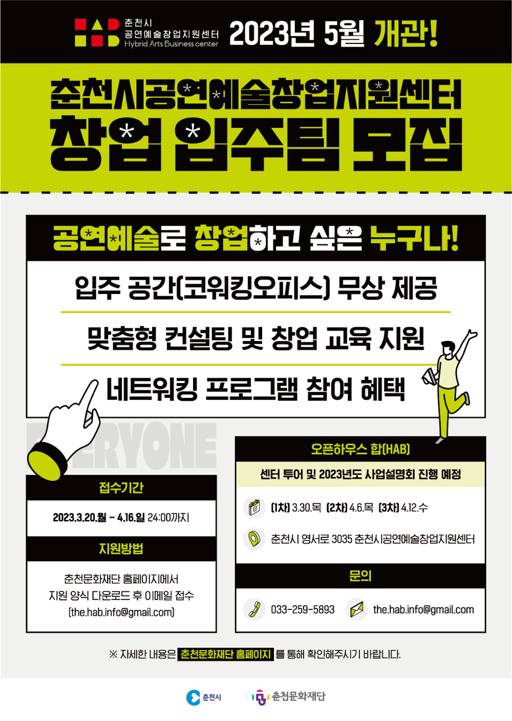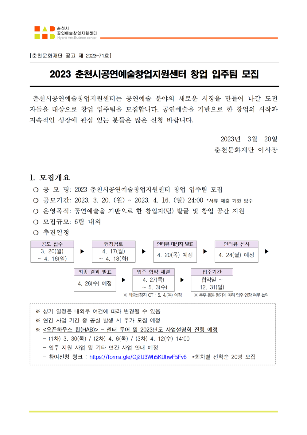 | 2023 춘천시공연예술창업지원센터 창업 입주팀 모집 공고 | |||