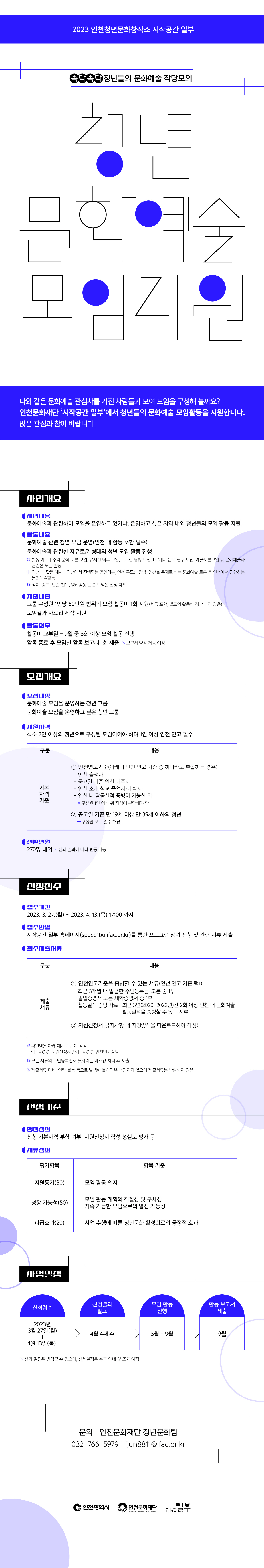6. 문의: 인천문화재단 청년문화팀 032-766-5979 / jjun8811@ifac.or.kr