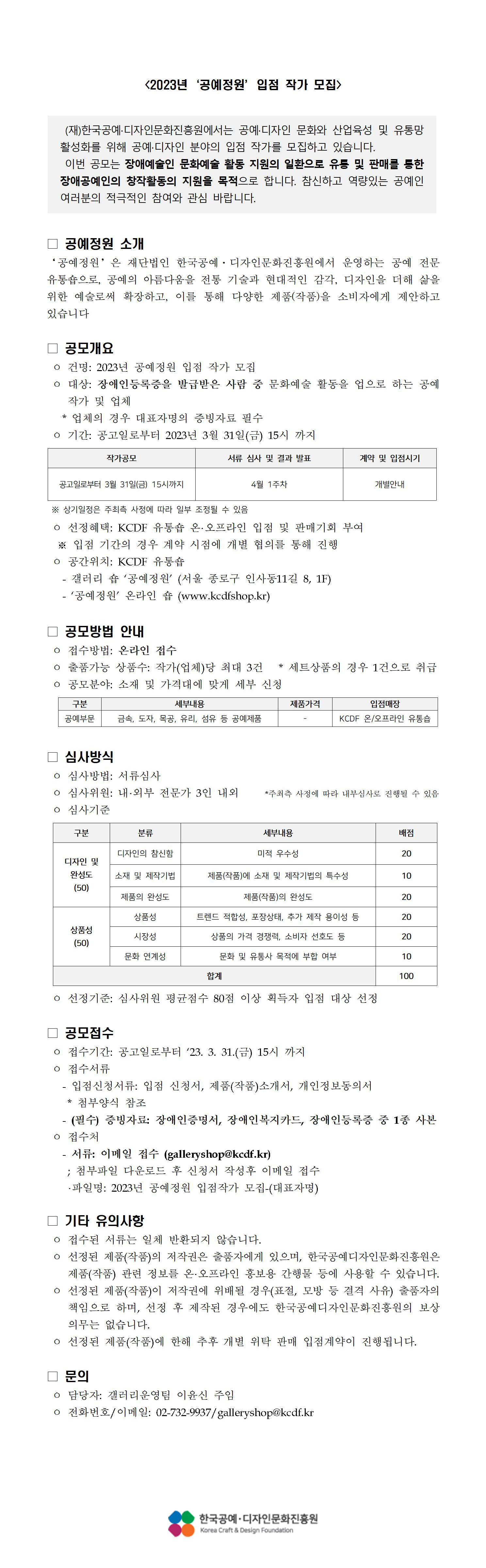 | 2023년 <공예정원> 입점 작가 모집 | |||
