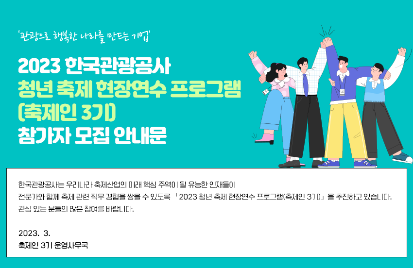 | 2023 한국관광공사 청년 축제 현장연수 프로그램(축제인 3기) 참가자 모집 | |||