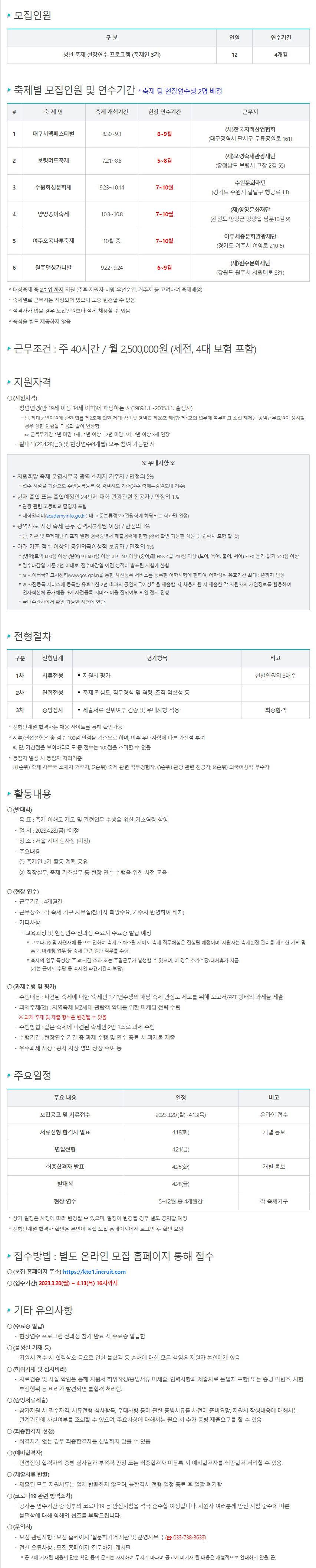| 접수기간 | 2023-03-20 ~ 2023-04-13 | ||