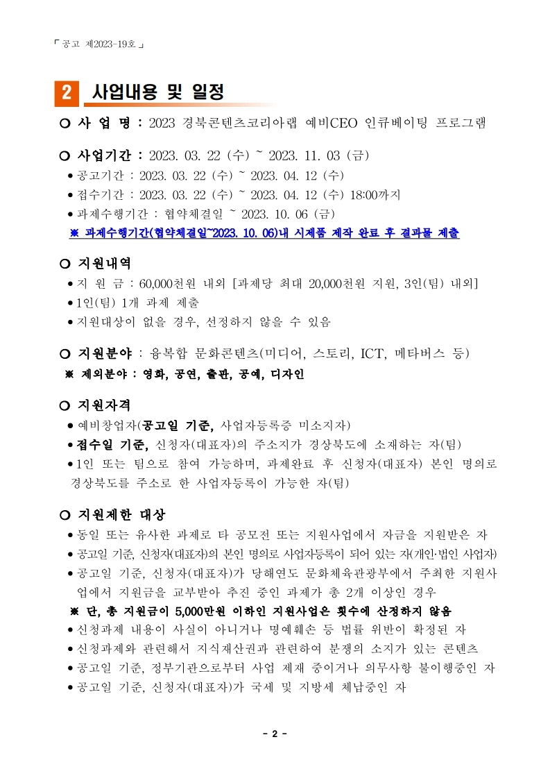 | 분야·대상 | 융복합 문화콘텐츠(미디어, 스토리, ICT, 메타버스 등) | 인원 | 3인(팀) |