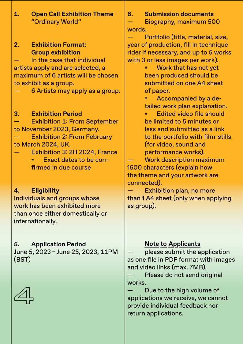 | 2023년 독일 X 영국X 프랑스 한국문화원 작가공모 | |||