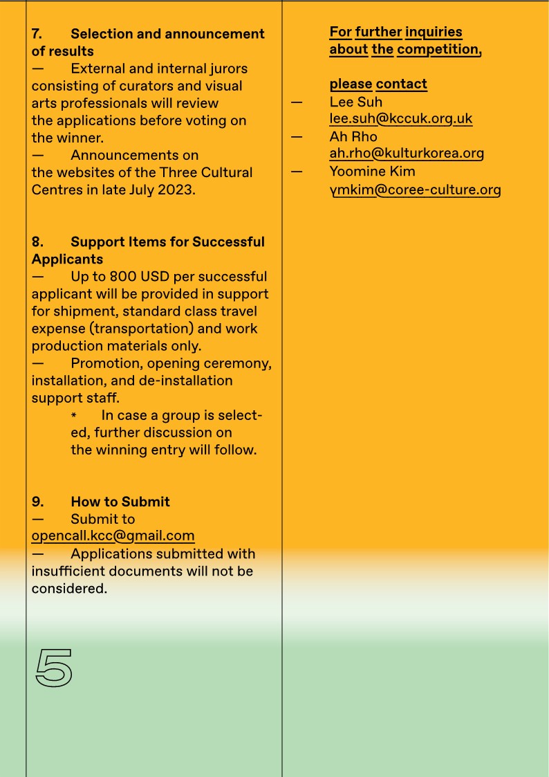 10. 문의 주독일한국문화원 노아 (AH.RHO@KULTURKOREA.ORG), 주영국한국문화원 서리(LEE.SUH@KCCUK.ORG.UK), 주프랑스한국문화원 김유민(YMKIM@COREE-CULTURE.ORG)