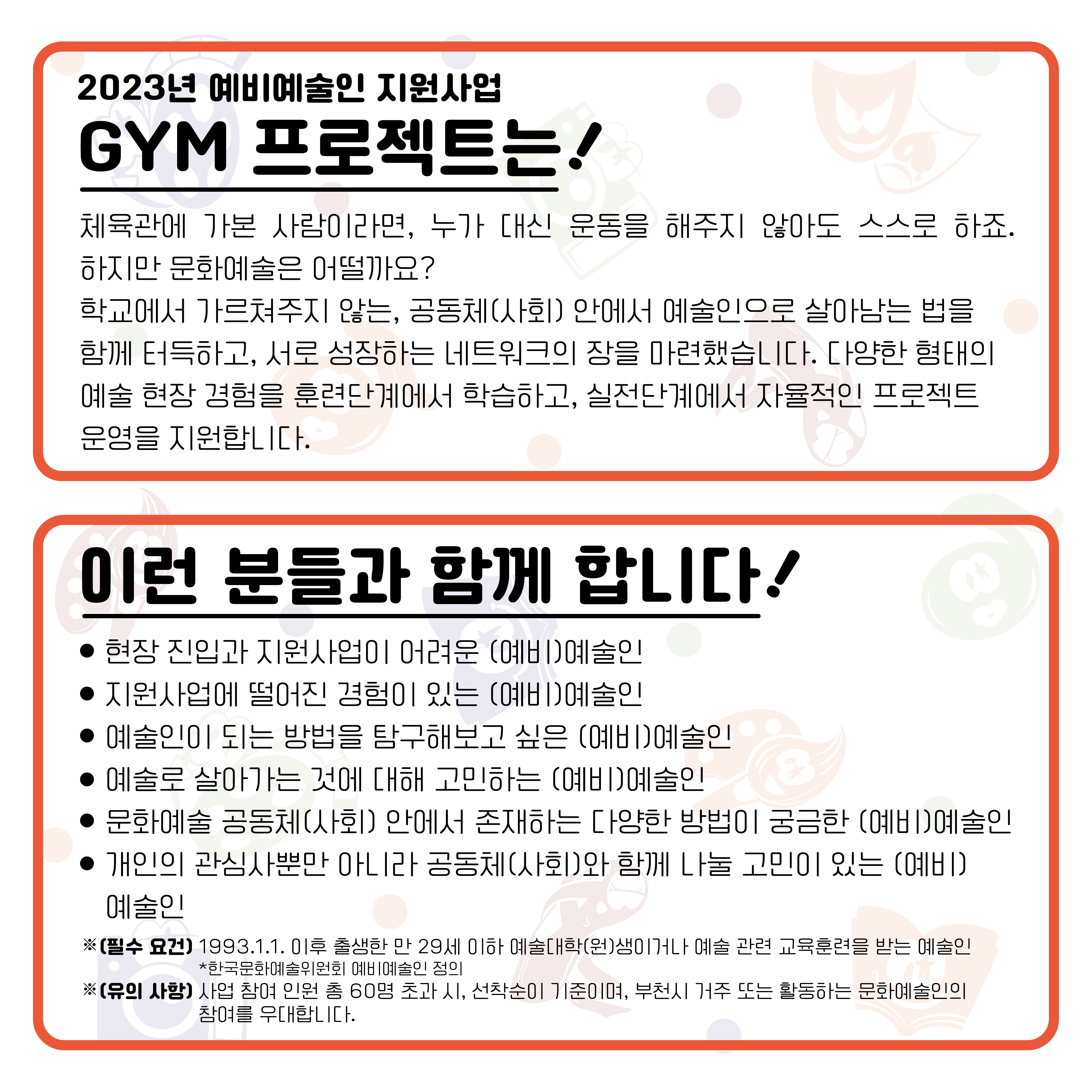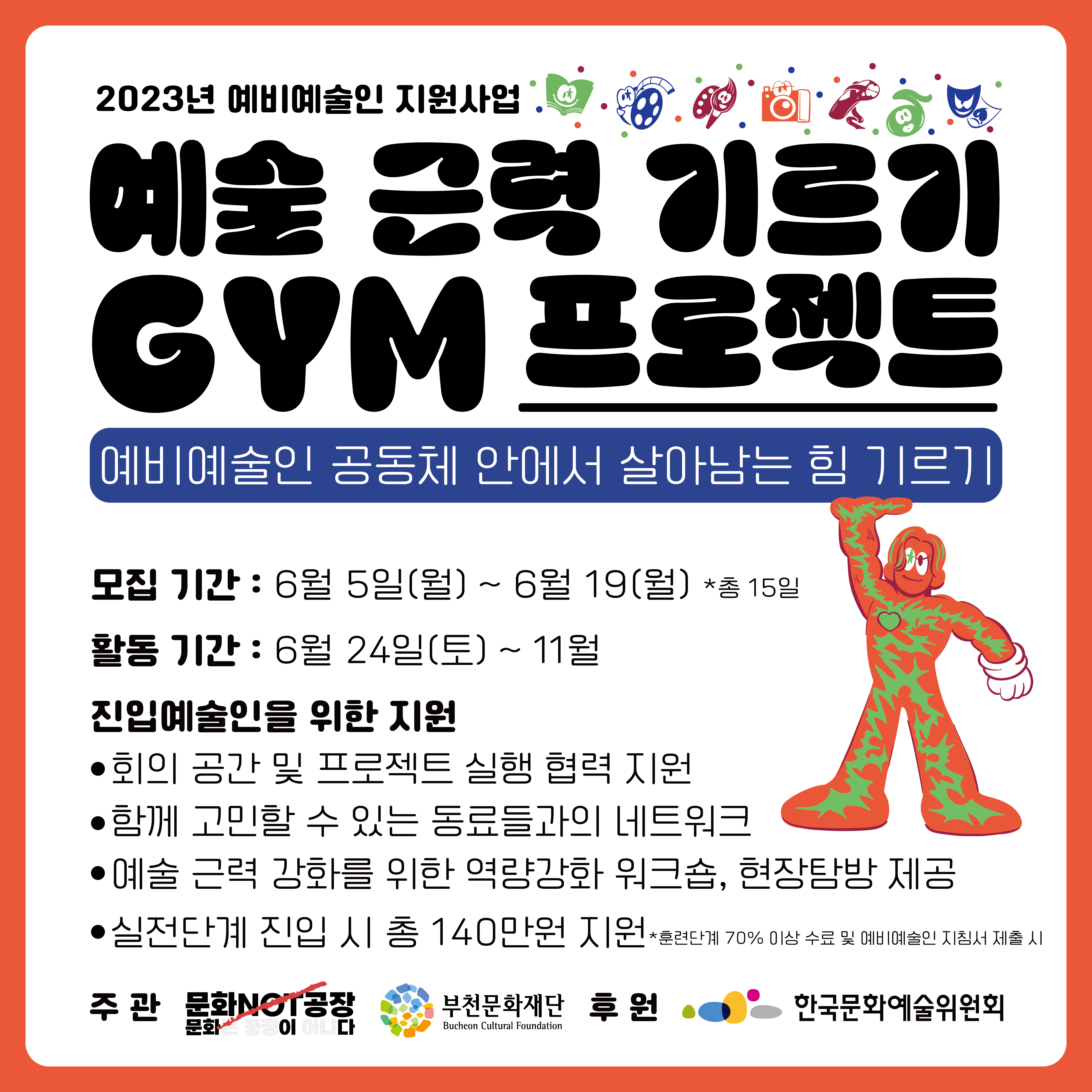 | 예비예술인 지원사업 [예술 근력 기르기 GYM 프로젝트] 참여자 모집 | |||