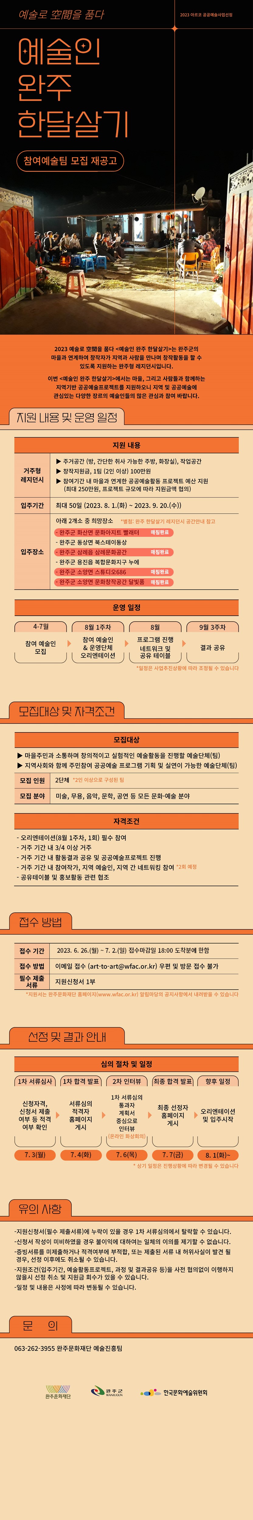 | art-to-art@wfac.or.kr | 전화번호 | 예술진흥팀 063-262-3955 | |