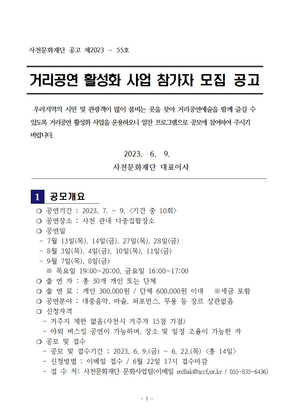 | 거리공연 활성화 사업 참가자 모집 공고 | |||