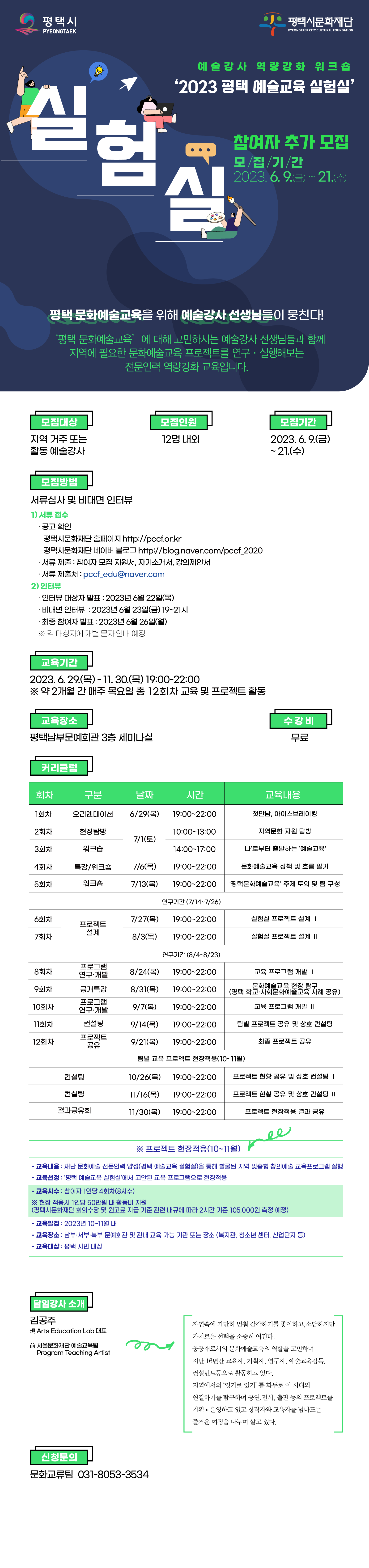 | 2023 예술강사 역량강화 워크숍 <평택 예술교육 실험실> 참여자 추가 모집 | |||