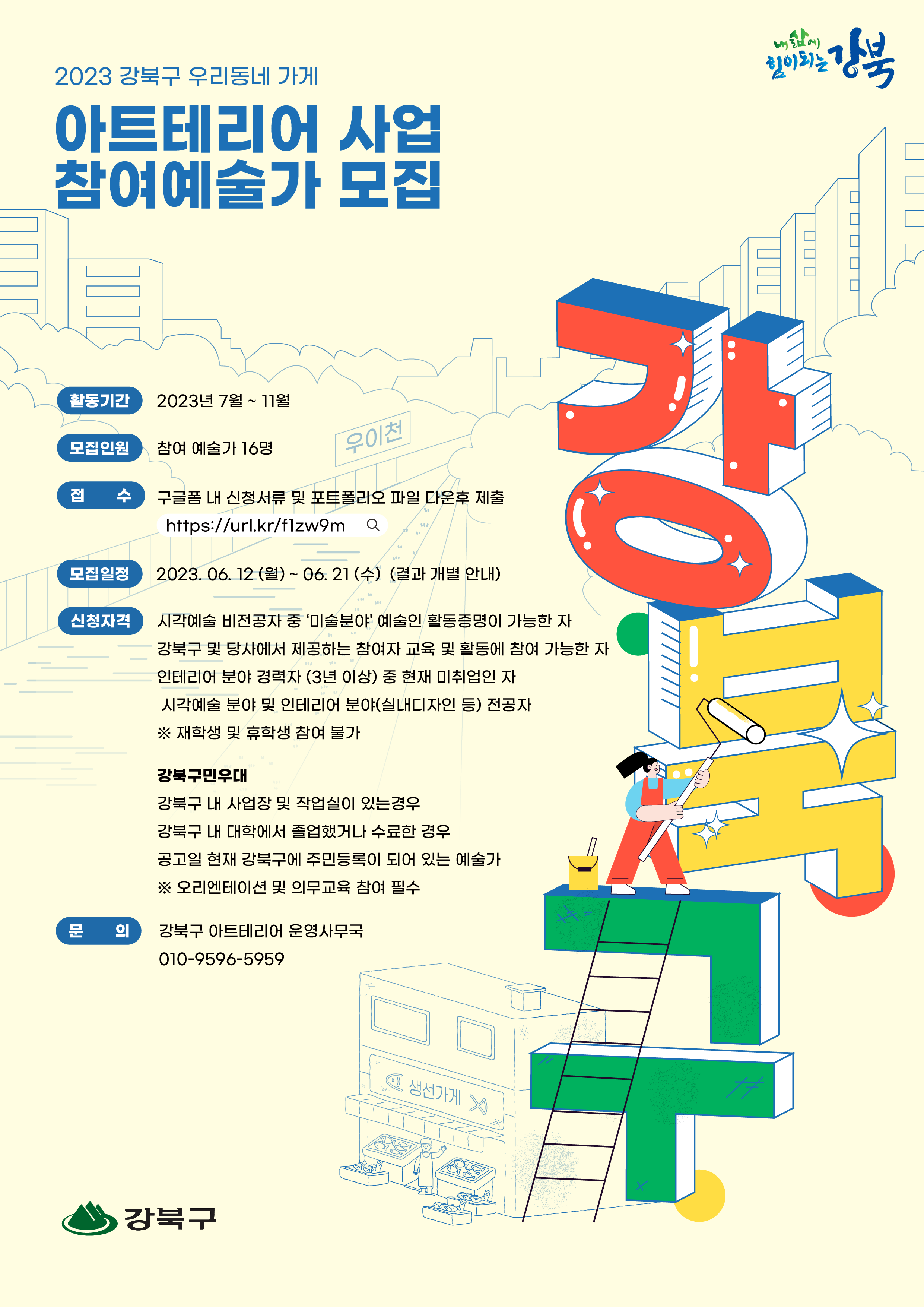 <2023 강북형 아트테리어 사업>에서 참여인력 분들을 모집합니다.