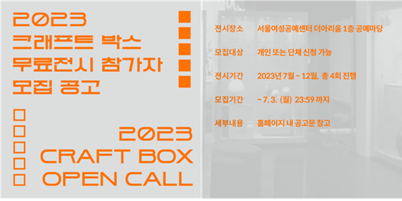 | 2023년 크래프트박스 무료전시 참가자 모집(~7월 3일(월), 23시 59분까지) | |||