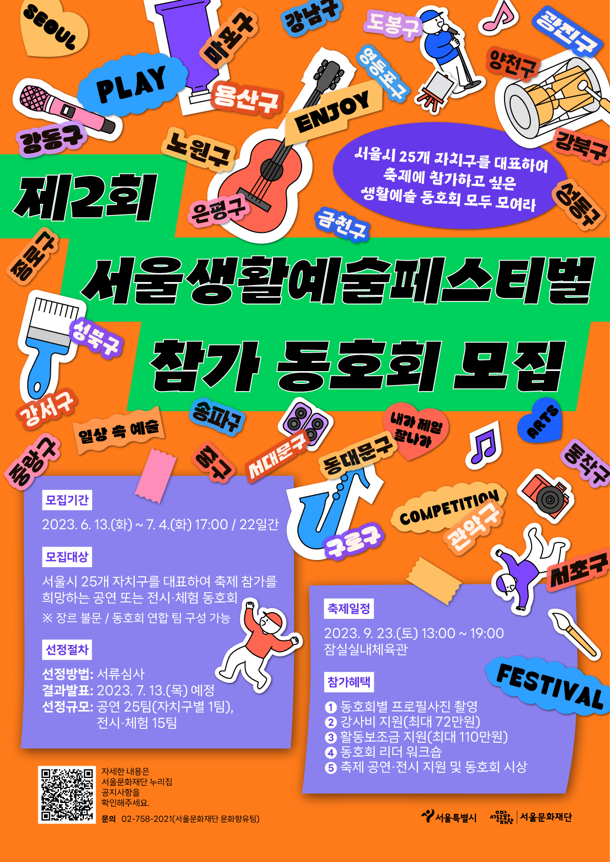 | 제2회 <서울생활예술페스티벌> 참가 동호회 공개모집(6.13.~7.4.) | |||
