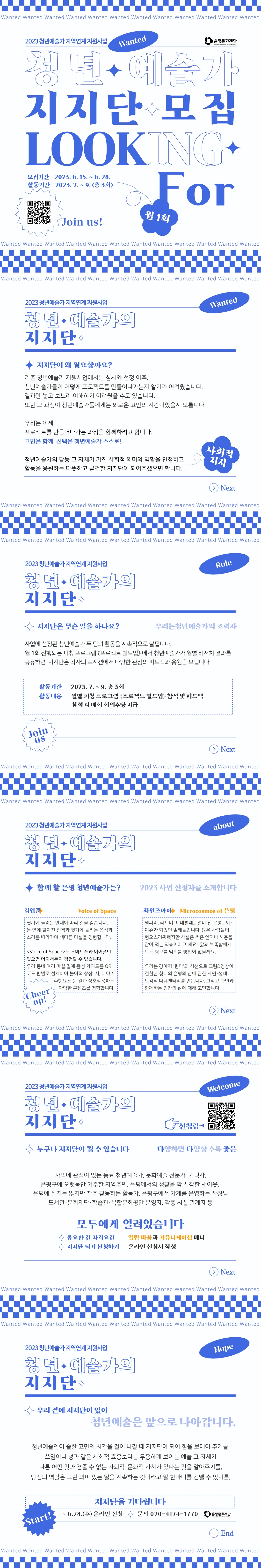 | 【2023 청년예술가 지역연계 지원사업】지지단 모집(~6.28.) | |||
