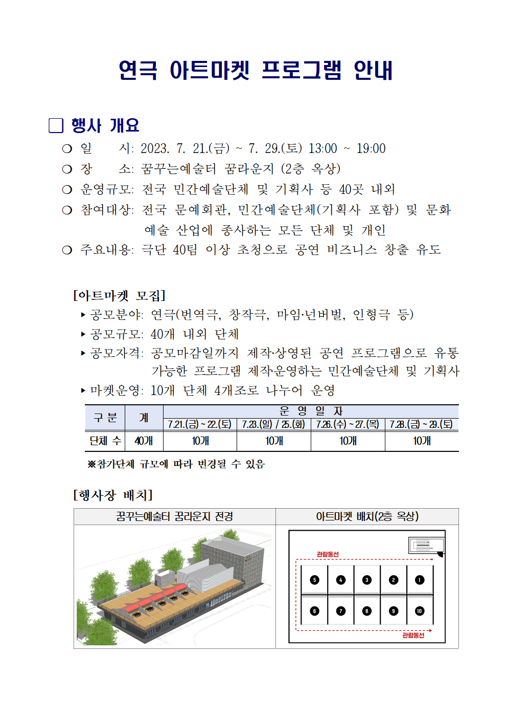| 분야·대상 | 전국 문예회관, 민간예술단체(기획사 포함) 및 문화 예술 산업에 종사하는 모든 단체 및 개인 | 인원 | - |