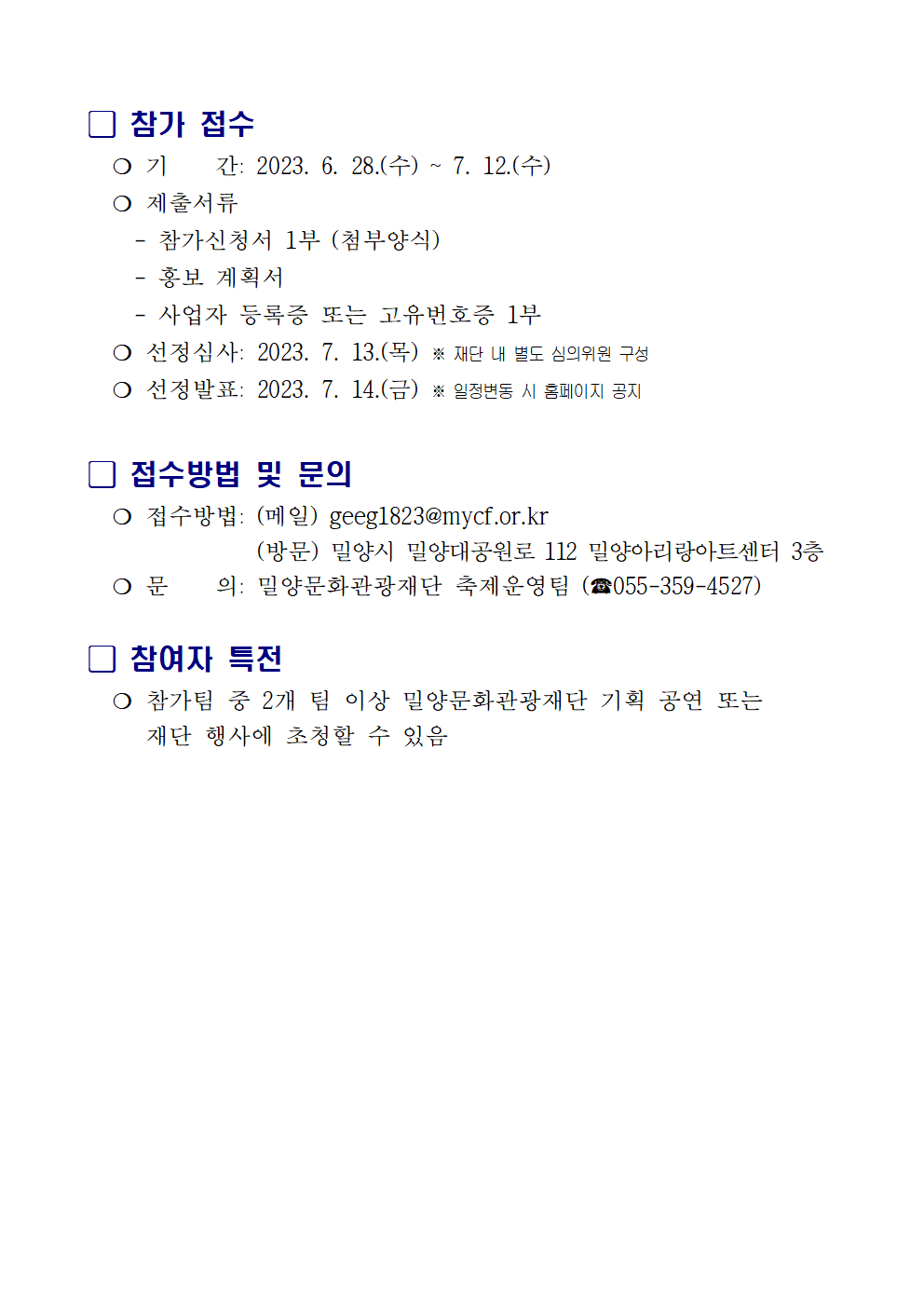 | geeg1823@mycf.or.kr | 전화번호 | 축제운영팀 055-359-4527 | |