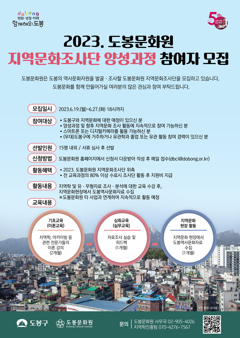 | 분야·대상 | 도봉구와 지역문화에 대한 애정이 있으신 분 | 인원 | 15명 내외 |