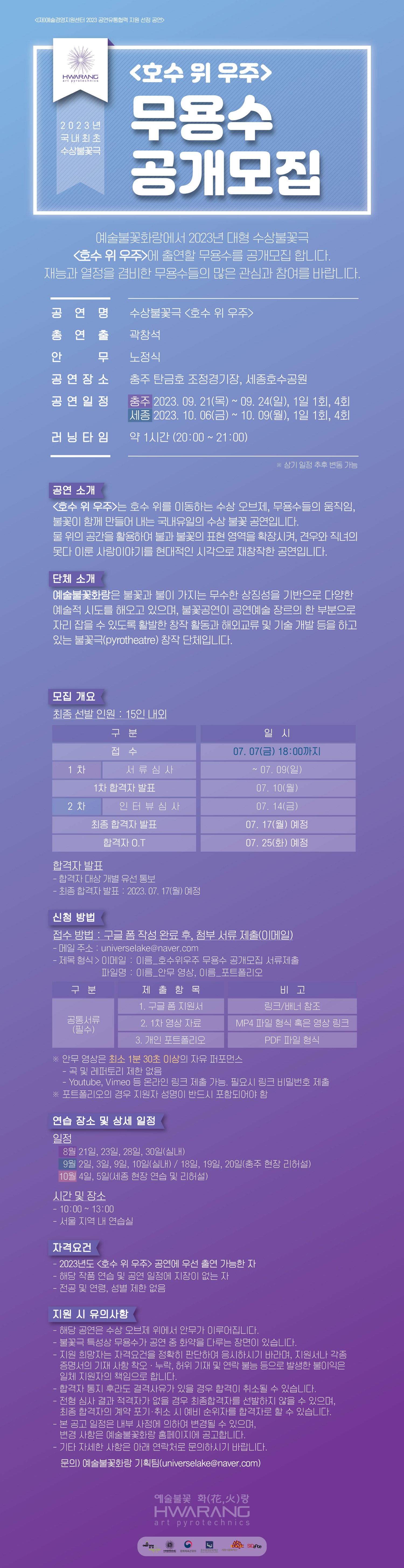 | 2023 대형 수상불꽃극 <호수 위 우주> 무용수 공개모집 | |||