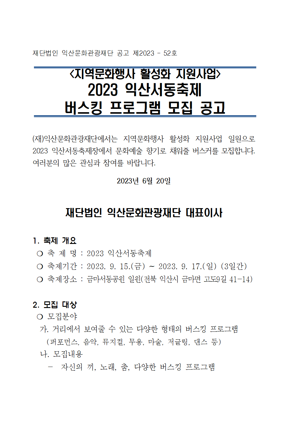 | <지역문화행사 활성화 지원사업>2023 익산서동축제 버스킹 프로그램 모집 공고 | |||
