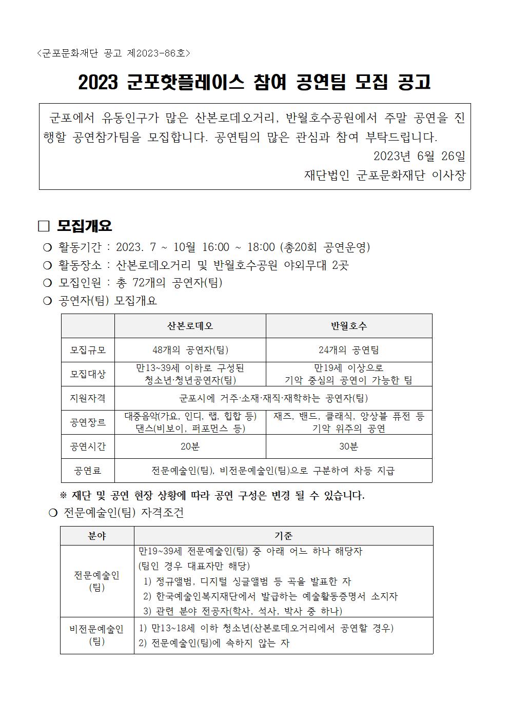 | 2023 군포핫플레이스 공연팀 모집 공고 | |||