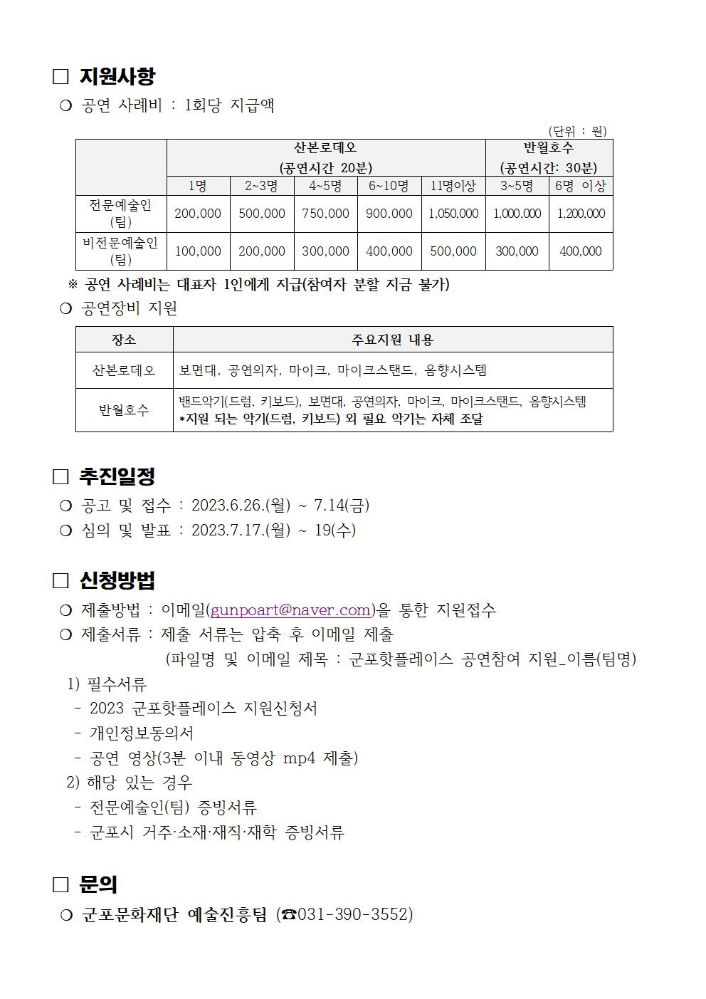 | gunpoart@naver.com | 전화번호 | 예술진흥팀 031-390-3552 | |