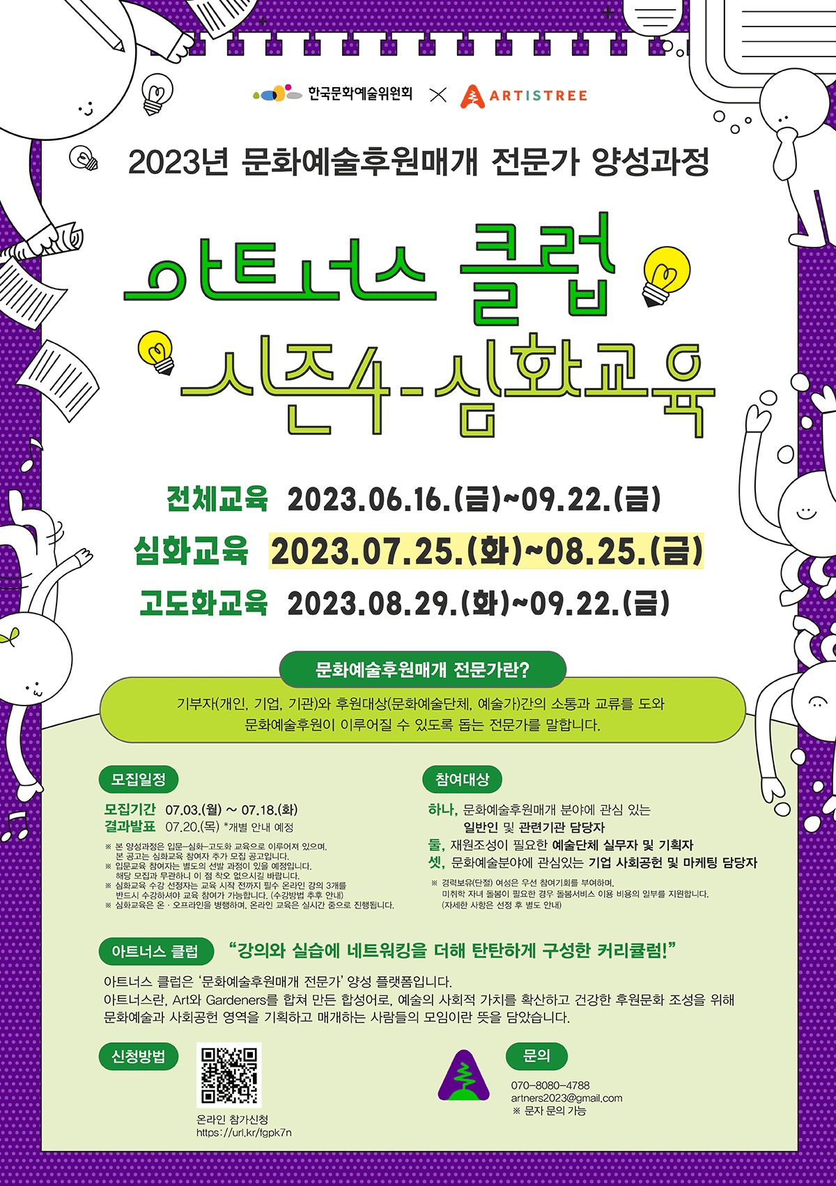 | 문화예술후원매개자 양성과정 '아트너스클럽 시즌4' 심화교육 모집 | |||