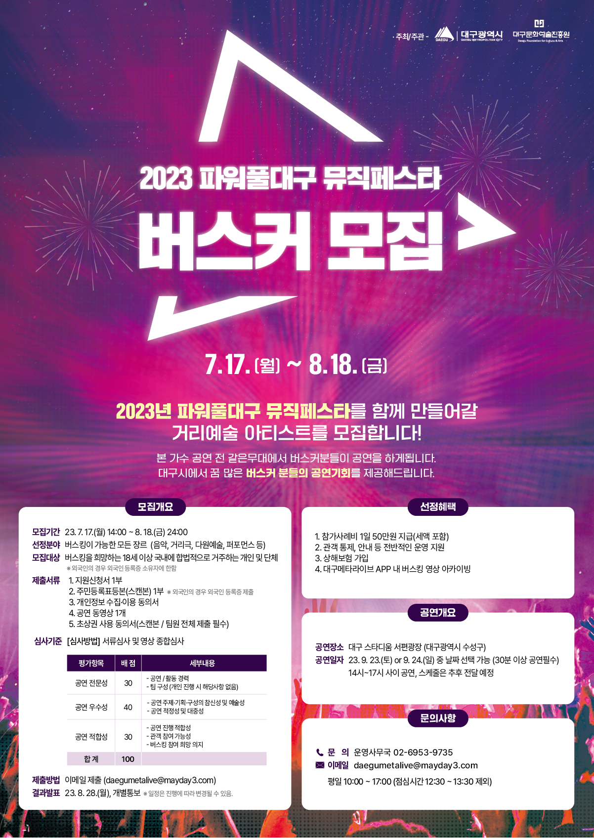 | 「2023 파워풀대구 뮤직페스타」 버스커 모집 공고 | |||
