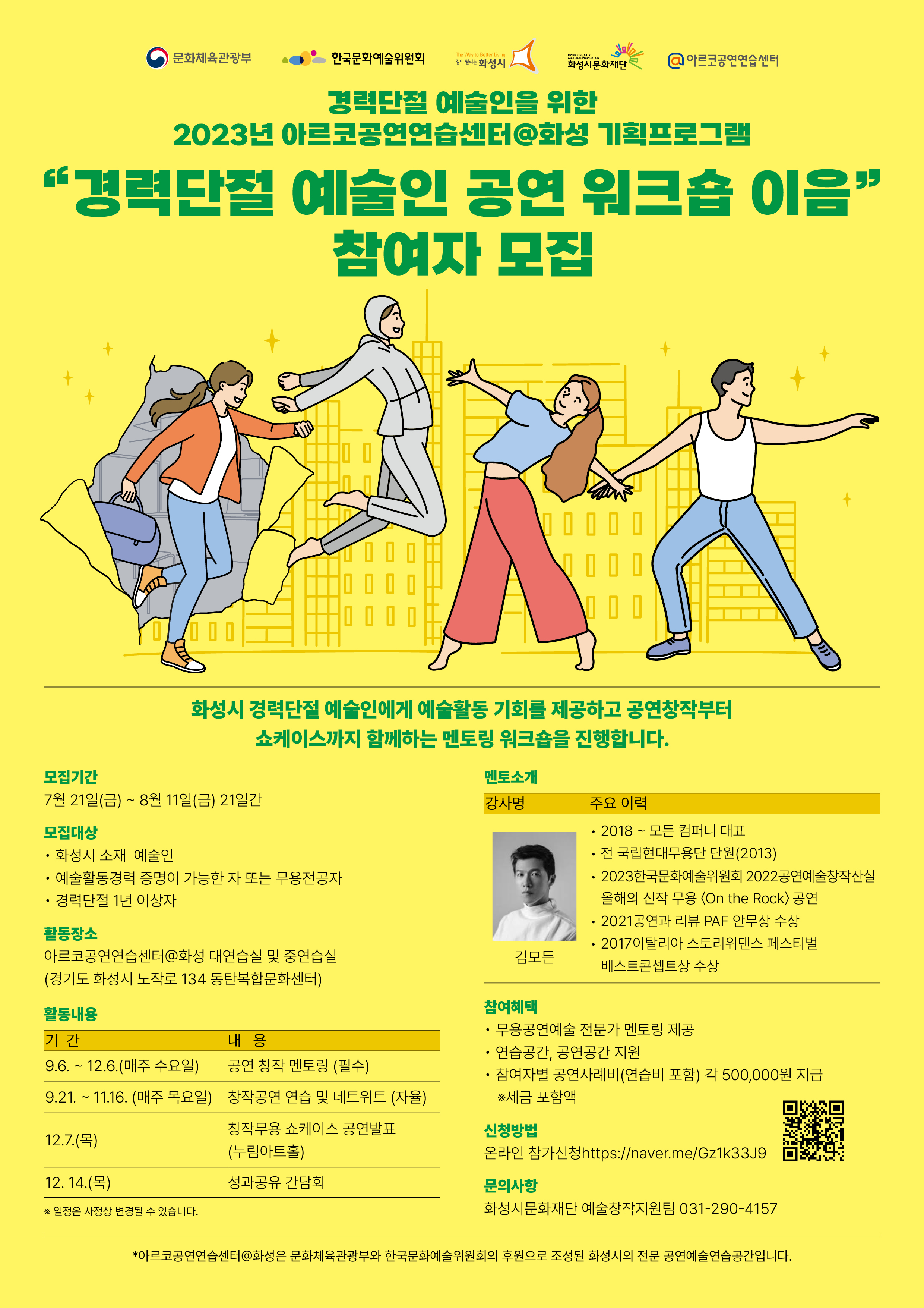 | 분야·대상 | 화성시 소재 경력단절 예술인(무용분야) | 인원 | 10명 내외 | ||||||||||||||||||||||||