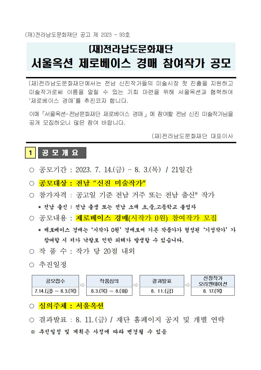 | 2023 서울옥션 제로베이스 경매 참여작가 공모 | |||