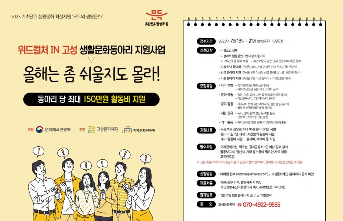 | 2023 기초단위 생활문화 확산지원 모두의 생활문화 '위드컬처 IN 고성' <올해는 좀 쉬울지도 몰라> | |||