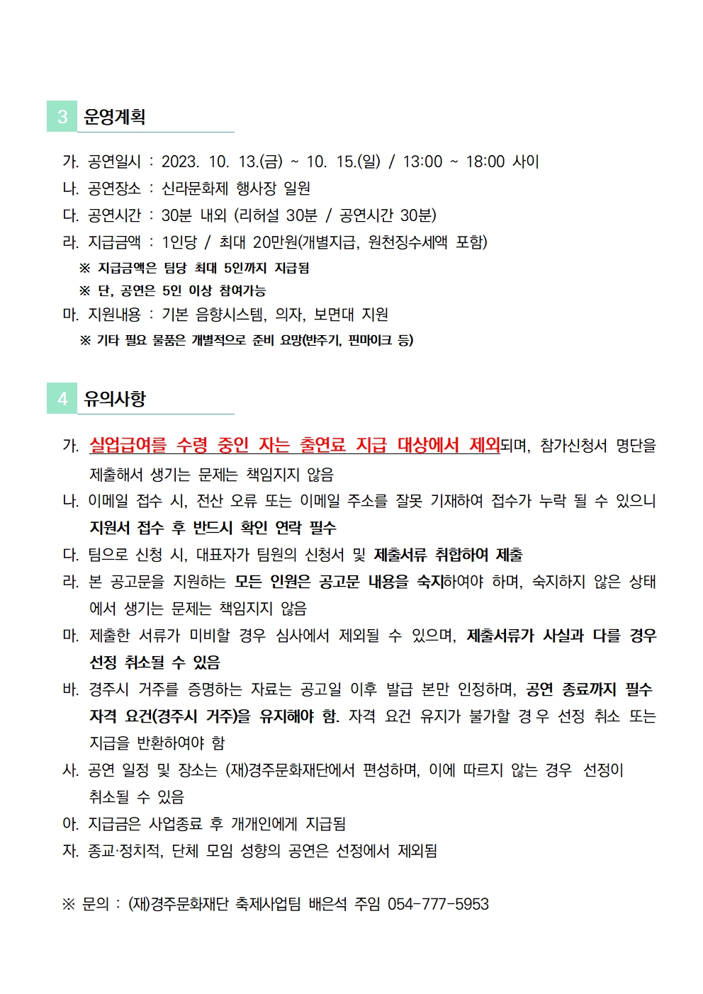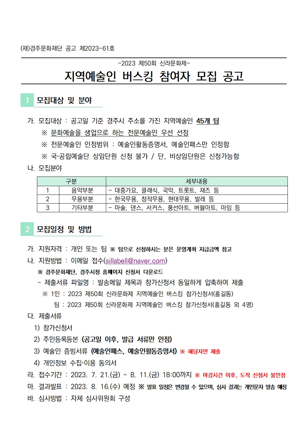 | 2023 제50회 신라문화제 지역예술인 버스킹 참여자 모집 | |||
