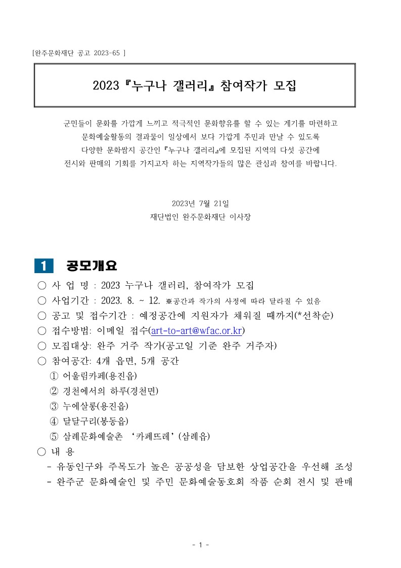 | 2023 누구나 갤러리, 참여작가 모집 | |||