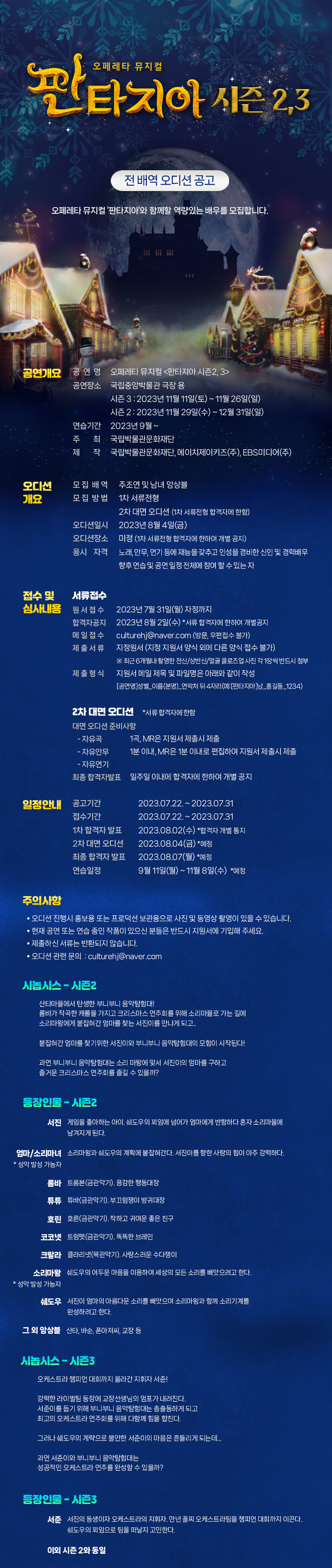 | 오페레타 뮤지컬 <판타지아 시즌 2, 3> 전배역 오디션 공고 | |||